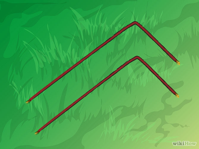 Bend two identical pieces of wire into an "L" shape and hold one in each hand by theshort part of the "L" so that the long part is parallel with the ground and so they can swing freely from side to side. You can use coat hangers to make these rods. Some dowsers claim certain metals, such as brass, to be more effective.