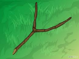 Find a forked ("Y"-shaped) branch from a tree or bush. Hold the two ends on the forkedside, one in each hand. You may want to experiment with holding it with your palms facing up or down; one may be more effective than the other. Hazel or willow branches were commonly used because they were light and porous, and were believed to better absorb vapors rising from buried metals or water, thus weighing down the un-forked end